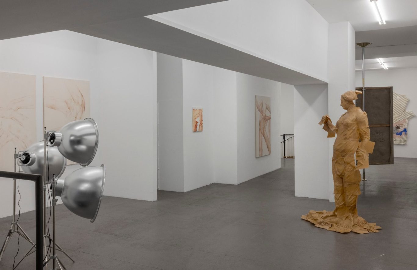 In the exhibition No Sorrows, Just Meow-Meows, the artists Sevina Tzanou (born 1994 in Athens), Zoë Leticia Thomas (born 2000 in Bonn) and Rebekka Benzenberg (born 1991 in Duisburg) devote themselves to the pressing issues of female self-presentation, body ideals and mental health. Their work ranges from painting and sculpture to sound, video and animation. The joint presentation creates a space for intellectual and aesthetic engagement with conditions of individual and societal overload. Pressure geared towards self-optimisation, digital self-assessment, and the resulting tensions between body, image, and identity are critically reflected upon. What does it mean to live in a world where visibility and productivity are the markers of worth? What effect do capitalist performance standards have on mental health? And how might art deal with this when both the artist's persona and her motifs appear so heavily laden with art-historical significance that every image must be the expression of a position?